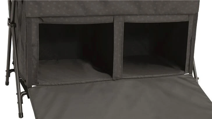 Portable cupboards make a huge difference to helping any family make the most of its camping holiday. The facility to keep things ordered and tidy can never be underestimated. The key feature to this Aruba cupboard is that it opens and folds away in a matter of seconds.
