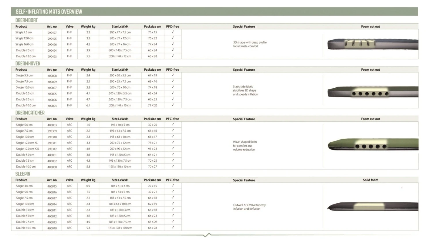 The Outwell Dreamcatcher Single XL 12cm mattress offers a premium choice of mattress for the discerning camper wanting a thick, durable and comfortable mattress. Designed using the NEW FHF (Flat High Flow) airflow valve, to ensure the speed of inflation, and that the time for deflation is greatly reduced. Additionally, the mattress is manufactured in a Green colour to ensure that it matches the various collections of Outwell tents available. The Dreamcatcher uses a wave shape in the foam core to reduce the pack size and weight, whilst having a superb comfort level.