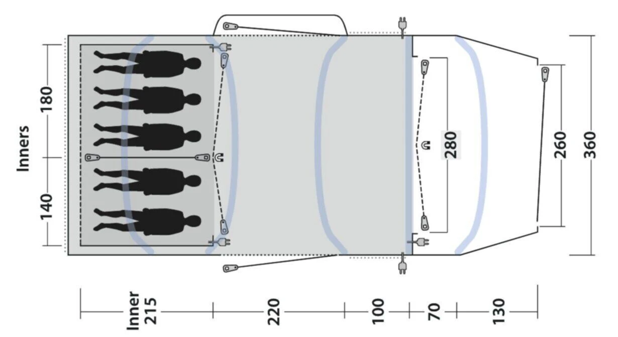 Rear ventilation system – each Outwell tent has a ventilation system to the rear, to promote airflow into the sleeping space. This helps to reduce condensation in and around the inner tent, whilst sleeping – a common issue in polyester tents.
