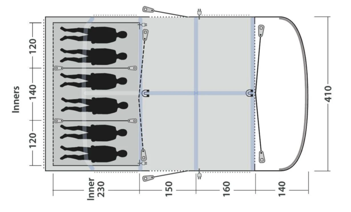 Superior Air Design – a thicker air tube, which is designed to maintain the additional weight of the Endurance RS Outtex 6000mm fabric, which is a heavier weight. The air system also has bracer beams to improve the structure and shape of the tent.