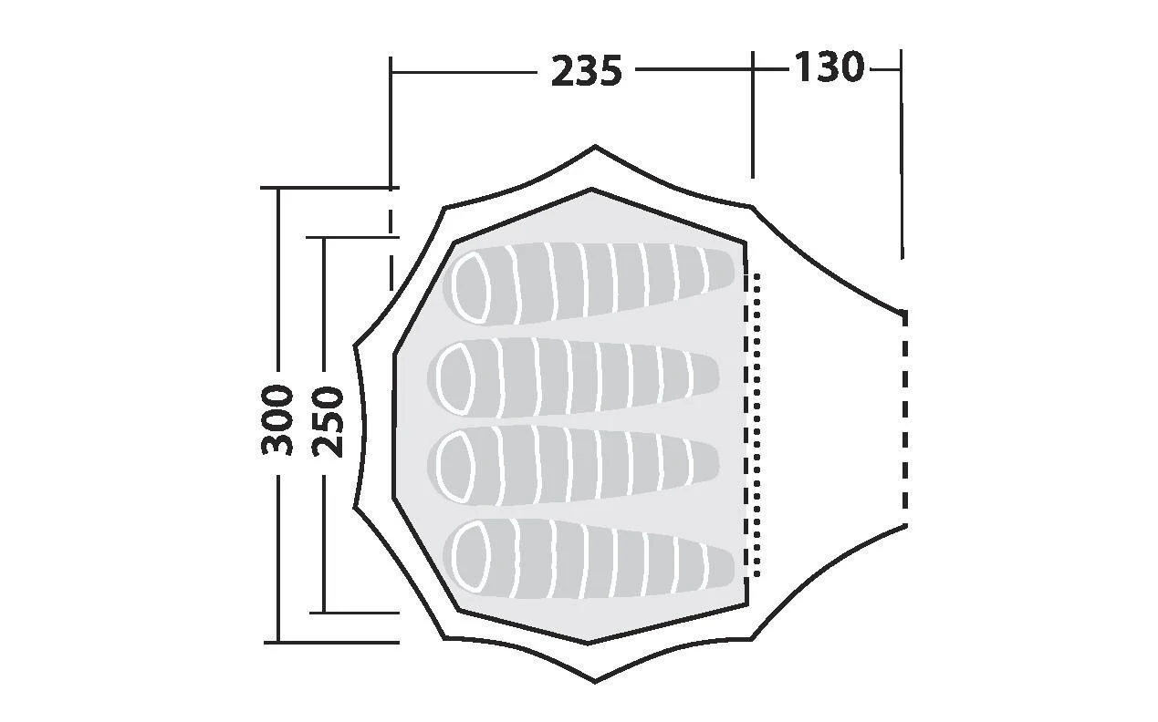 A classic tipi from Robens, the Fairbanks is a polycotton, single-wall tipi tent, which is supported by one single pole, making it really simple to pitch. Ideal for those requiring a traditional style tipi that still has the Robens technical features. The Robens Fairbanks has protective eaves, which extend out at the front, creating a large porch area. There is a single front door with an arched shaped two-way zip. The Fairbanks can sleep up to four people, and has a fully sewn in groundsheet, and mesh vents to ensure the creepy crawlies cannot access the sleeping area.